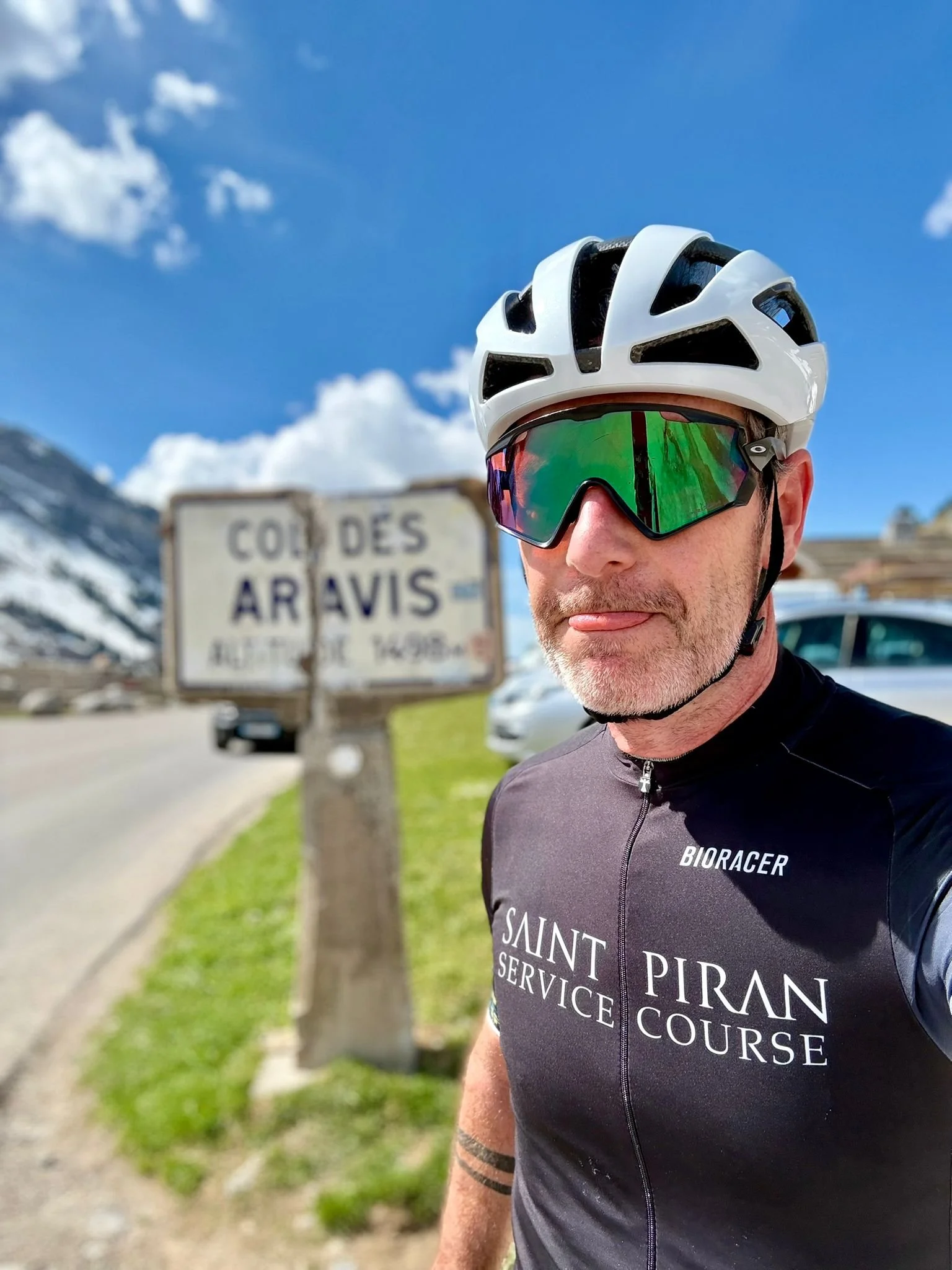 Chris is in the French Alps, south of Lake Geneve and just to the north of famous places like Alp d’Huez and the fearsome Galibier. There are plenty of stunning rides, and coffee stops to be had in the region around Col Des Aravais, and there is still snow to be found on the passes.